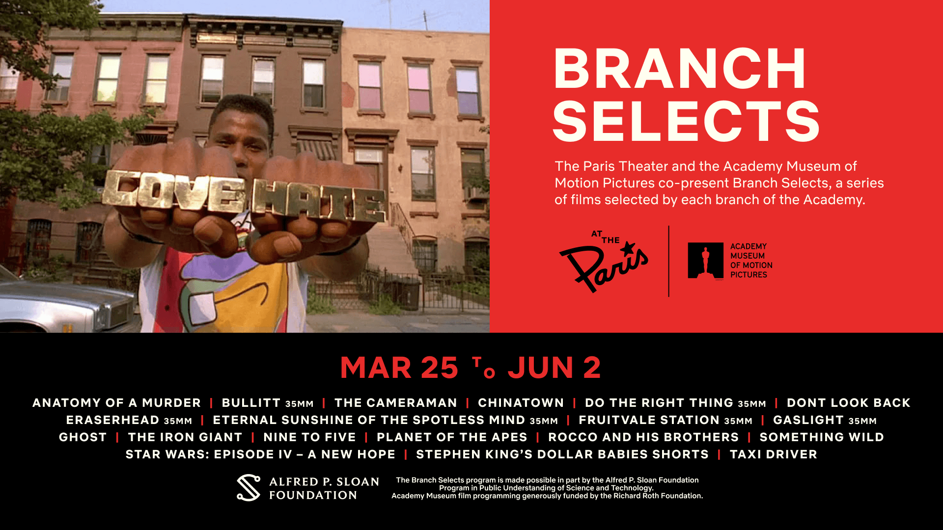Branch Selects, the screening series presented by the Academy Museum of Motion Pictures and programmed in collaboration with members of the Academy of Motion Picture Arts and Sciences’ 19 branches, will return to the Paris Theater on March 25.